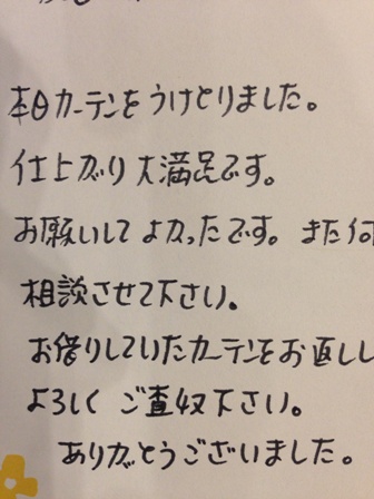 またカーテンを作り変える等ありましたら、御社にお願いしたいと思いますので、