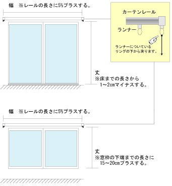 カーテンの横の長さ(裾を広げた長さ)により料金が異なります。